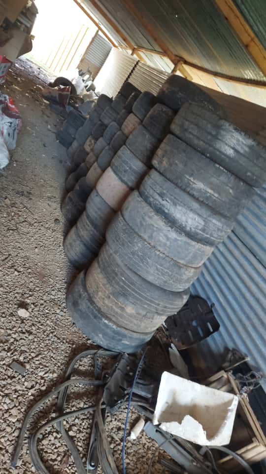 01 LOTE CONTENDO PNEUS USADOS DE VEICULOS, ONIBUS, MÁQUINAS E EQUIPAMENTOS DIVERSOS. O bem vai a leilão no estado e condições em que se encontra.
