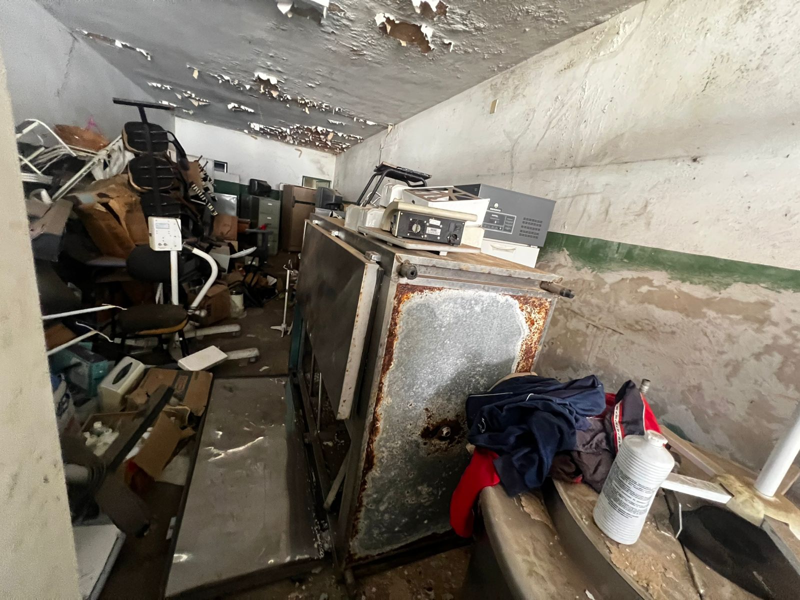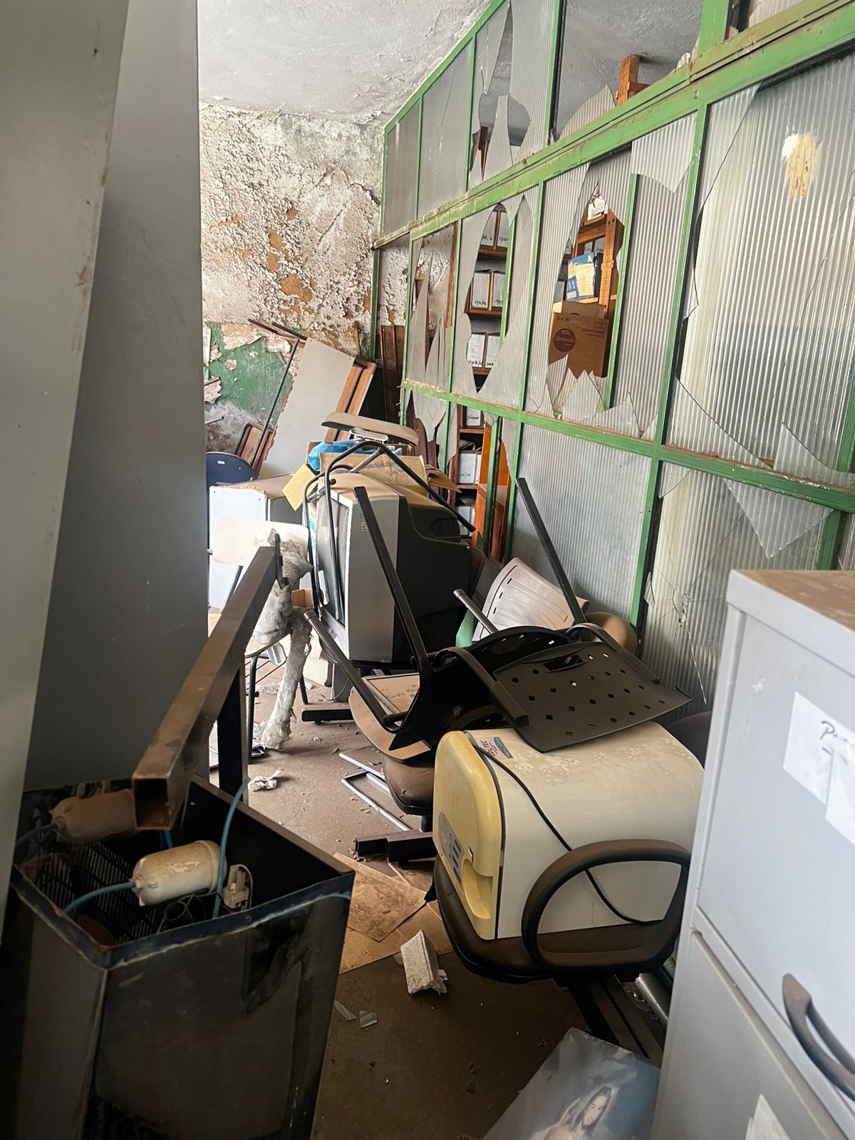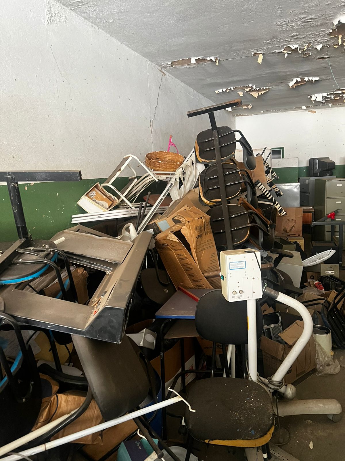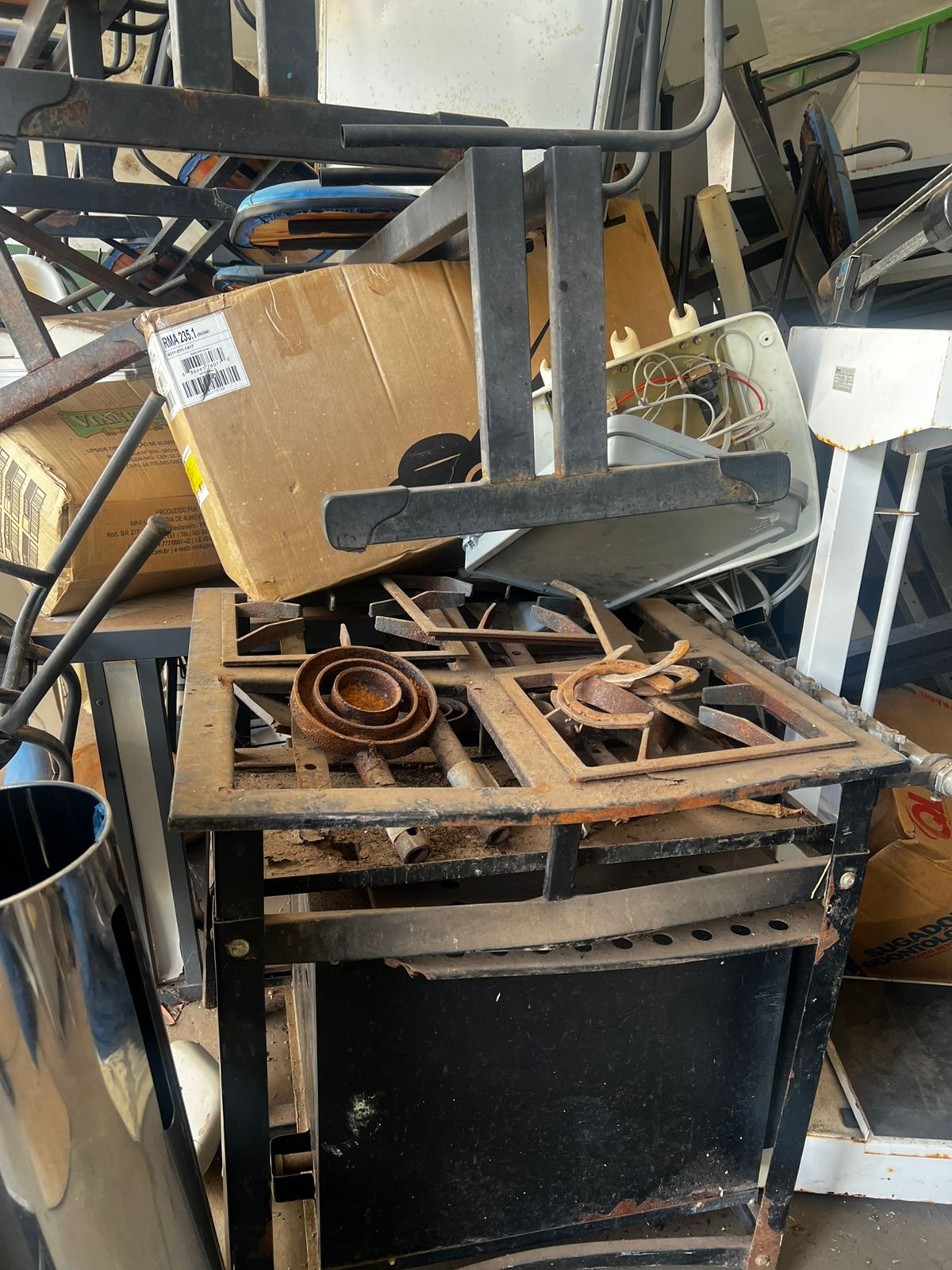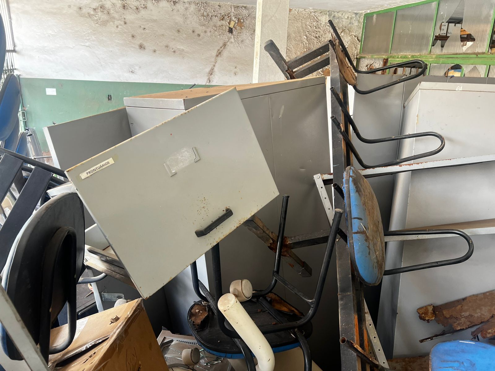 LOTE CONTENDO BENS DIVERSOS EM ESTADO DE SUCATA: MÓVEIS DIVERSOS mesas, carteiras e cadeiras, armários, arquivos em aço, mimeógrafos, longarinas, balcões, geladeiras, panelas em Inox e alumínio entre outros; MÓVEIS E EQUIPAMENTOS HOSPITALARES E ODONTOLÓGICOS DIVERSOS entre outros, INFORMÁTICA cpu´s, monitores, mouses, teclados, estabilizadores, nobreak, impressoras, equipamentos de telefonia diversos entre outros; ELETROELETRONICOS DIVERSOS Tv´s, aparelhos eletrônicos,  aparelhos de som,  entre outros. O lote acima vai a leilão no estado de sucata cuja finalidade é reciclagem e reaproveitamento peças e matéria-prima, nas condições intrínsecas e extrínsecas em que se encontram.