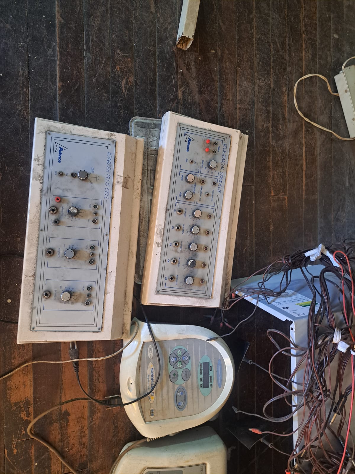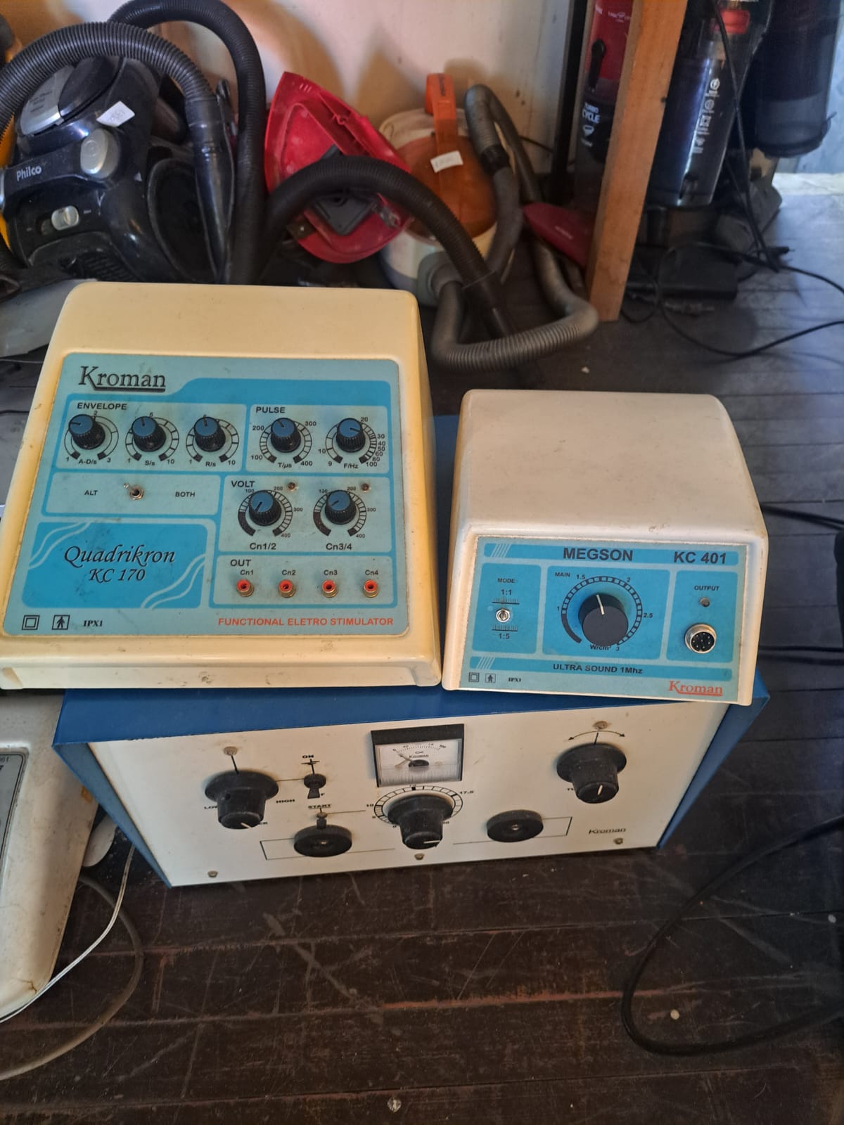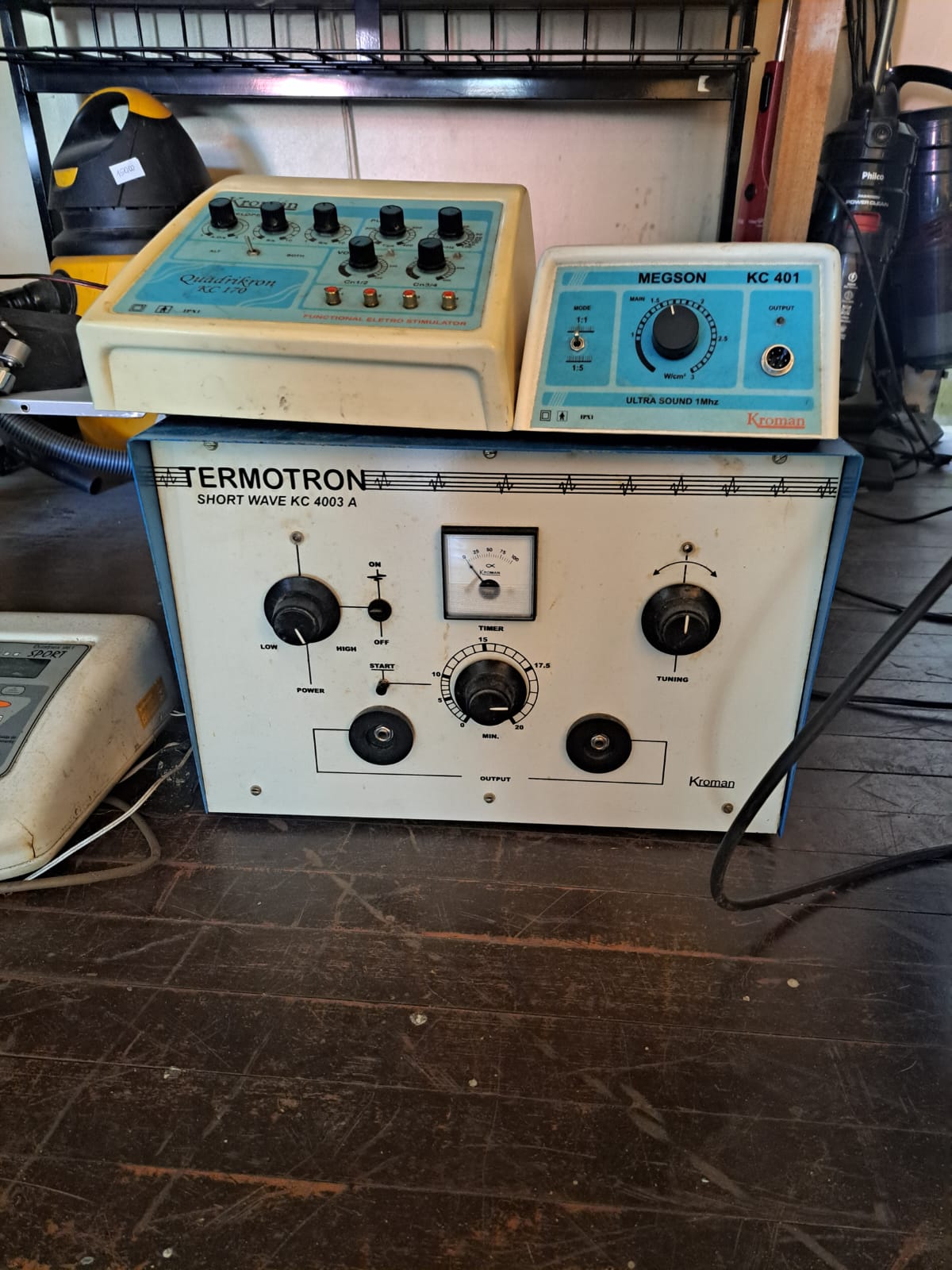 01 LOTE DE EQUIPAMENTOS DE FISOTERAPIA, TENS, PULMAO MECANICO ENTRE OUTROS, 01 Thermopulse Compact Diatermia Ondas Curtas Ibramed, 01APARELHO TERMOTRON SHORT WAVE KC 4003, 02 aparelhos fisioterapia kroman, 01 Umidificador Aquecido Takaoka 6060.  O bem vai a leilão no estado e nas condições (intrínsecas e extrínsecas) em que se encontra.