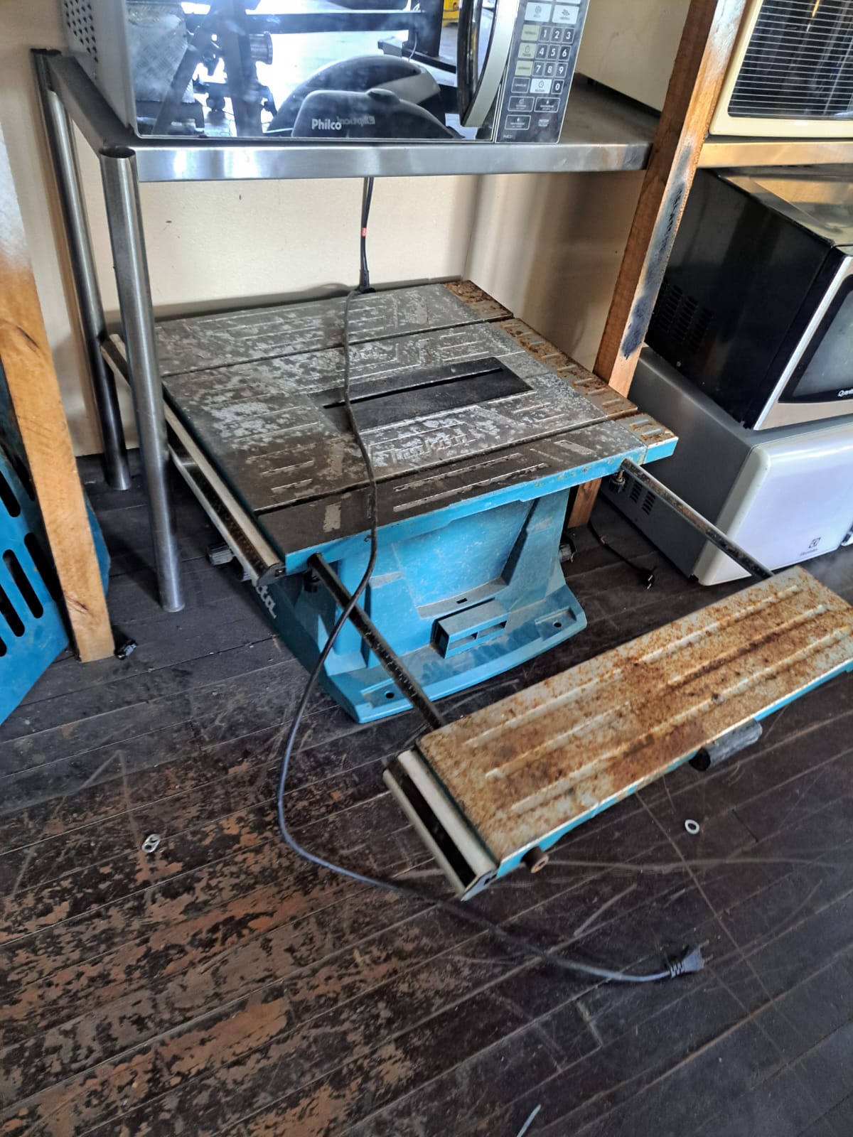 01 LOTE DE EQUIPAMENTOS DE MARCENARIA, 01 SERRA CIRCULAR DE BANCADA MAKITA MLT100 01 SERRA CIRCULAR PROFISSIONAL VERRY APOLLO, COM EIXO INCLINÁVEL 45º, 01 EXAUSTOR POLICORTE MANUAL, 02 ESQUADREJADEIRAS PORTATIL. O bem vai a leilão no estado e nas condições (intrínsecas e extrínsecas) em que se encontra.