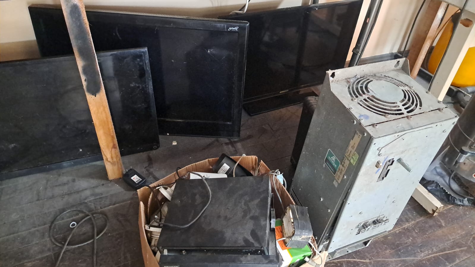 01 LOTE DE EQUIPAMENTOS CONTEDO 01 INVERSOR 60CV, 2 COMPRESSORES, BEBEDOURO, PROJETORES E DIVERSOS EQUIPAMENTOS. O bem vai a leilão no estado e condições intrínsecas quanto condições extrínsecas em que se encontra.